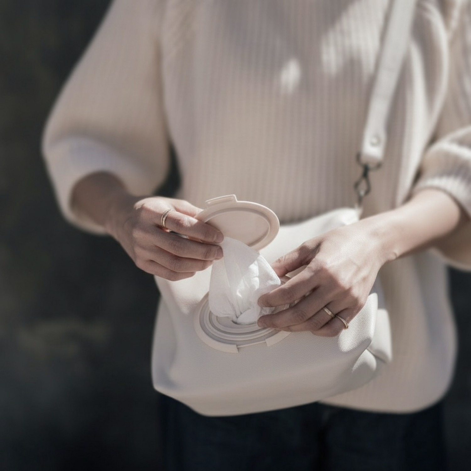 A diaper bag that feels like a handbag. Designed to be worn — not hidden.